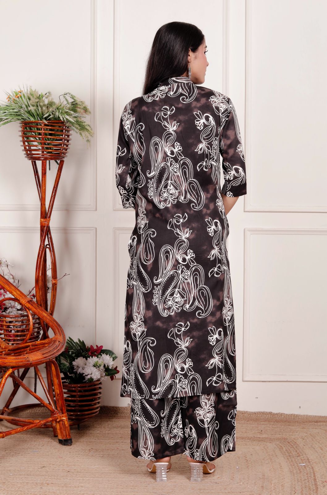 The set comes with matching printed pants featuring an elastic waistband for a comfortable and flattering fit. Whether you're heading to work, brunch, shopping, or festive gatherings—this co-ord set ensures effortless elegance with all-day comfort.